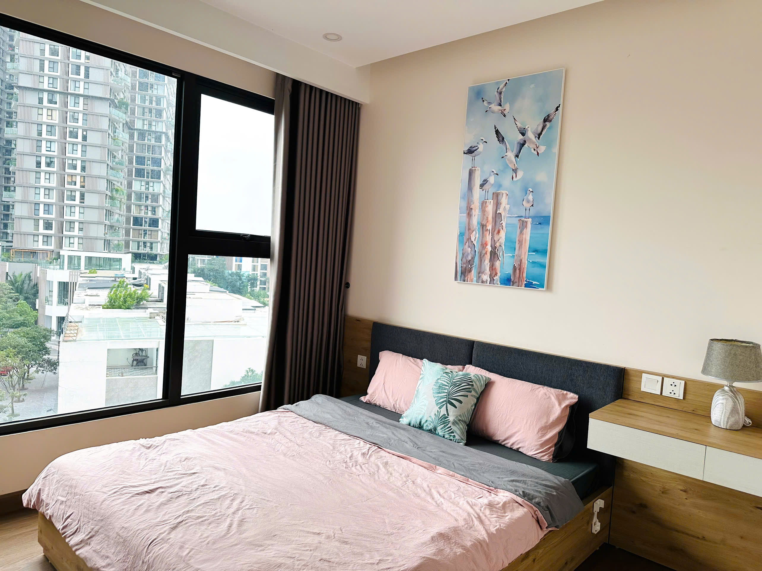 Gia đình cần cho thuê căn hộ 3 phòng ngủ (căn góc) tâm huyết tại tòa S1 Sky Oasis. Căn hộ sở hữu tầm nhìn panorama ôm trọn khu Biệt thự đảo Grand Island và sân Golf xanh mướt.