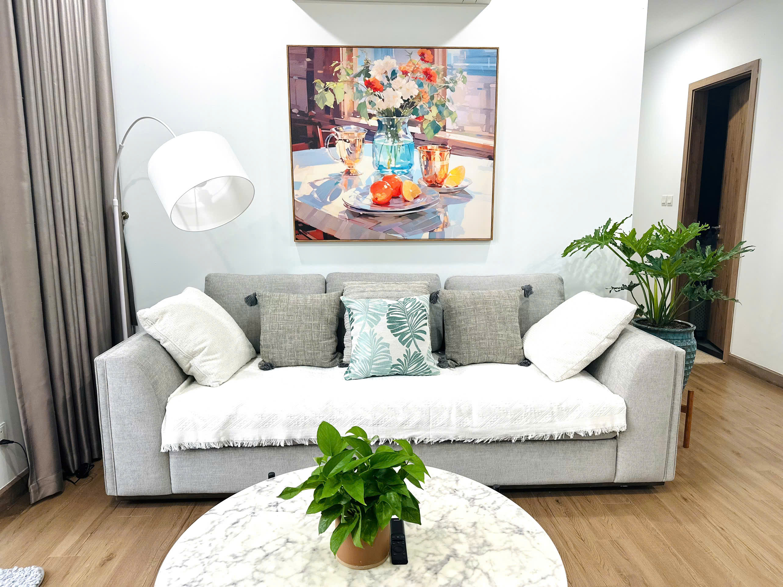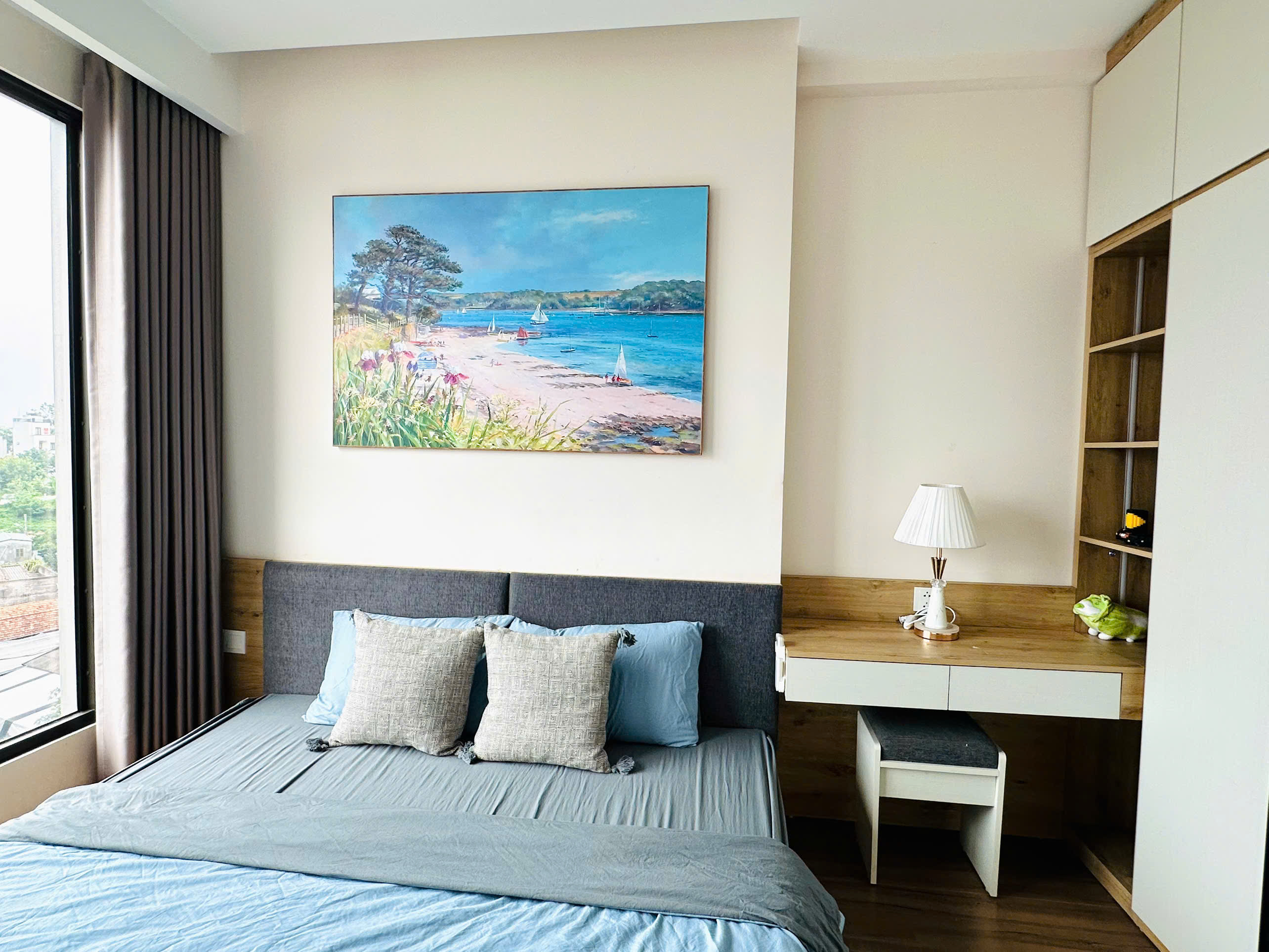 Gia đình cần cho thuê căn hộ 3 phòng ngủ (căn góc) tâm huyết tại tòa S1 Sky Oasis. Căn hộ sở hữu tầm nhìn panorama ôm trọn khu Biệt thự đảo Grand Island và sân Golf xanh mướt.