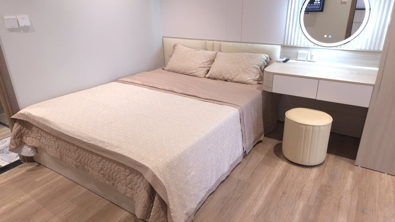 - Phòng ngủ: Giường tủ ,đệm lò xo túi cao cấp, đảm bảo giấc ngủ tiêu chuẩn resort.